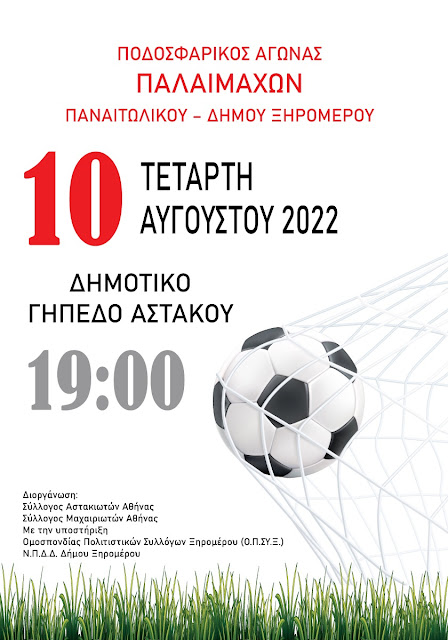 ΠΟΔΟΣΦΑΙΡΙΚΟΣ ΑΓΩΝΑΣ ΠΑΛΑΙΜΑΧΩΝ ΠΑΝΑΙΤΩΛΙΚΟΥ - ΔΗΜΟΥ ΞΗΡΟΜΕΡΟΥ την Αυγούστου 05, 2022 Λήψη συνδέσμου Facebook X Pinterest Ηλεκτρονικό ταχυδρομείο Άλλες εφαρμογές Σχόλια