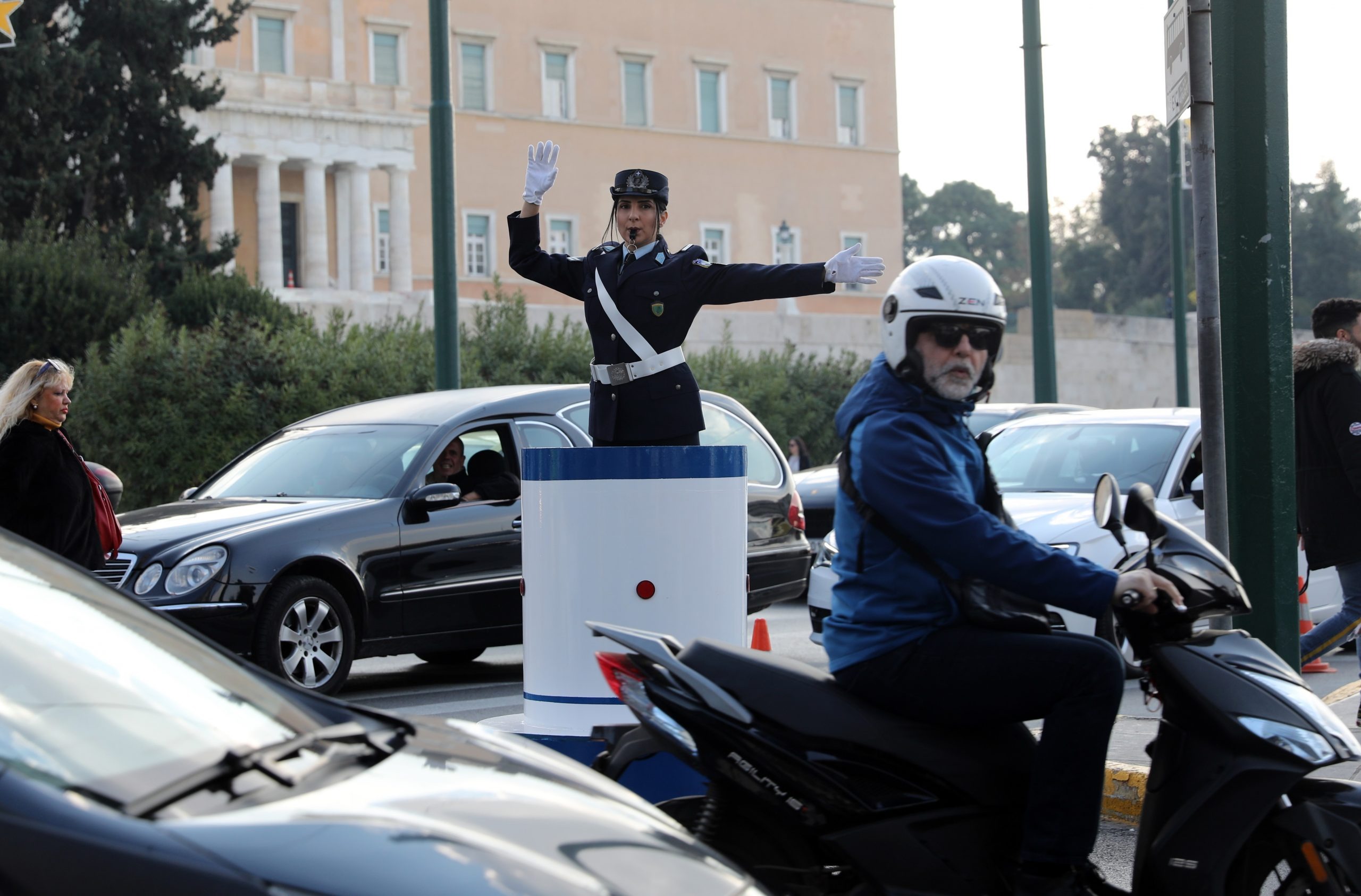 Ο Υπουργός Προστασίας του Πολίτη, Μιχάλης Χρυσοχοΐδης, μαζί με τη φυσική ηγεσία της Ελληνικής Αστυνομίας, επισκέφθηκε τη διασταύρωση των λεωφόρων Αμαλίας και Βασιλίσσης Σοφίας στο Σύνταγμα, συμμετέχοντας στο παραδοσιακό δρώμενο, όπου προσφέρονται τα καθιερωμένα εθιμοτυπικά δώρα στον τροχονόμο που βρίσκεται σε υπηρεσία.